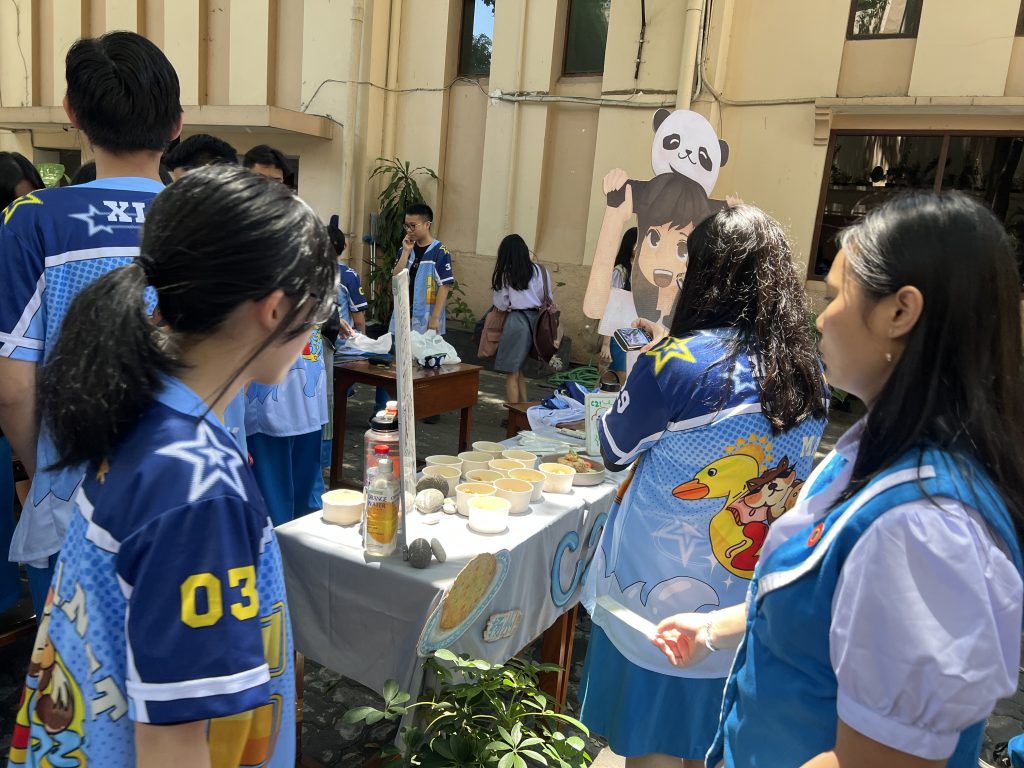 Di waktu yang bersamaan, teman-teman saya yang lain sedang memasak masakan cina. Masakan cina yang kelas kami pilih yaitu “Yangzhou Fried Rice” (扬州炒饭) yang berasal dan “Lions Head” (狮子头) yang keduanya berasal dari provinsi Jiangsu (江苏). Pada saat jeda waktu pertandingan mahjong, saya kadang-kadang melihat sebentar teman-teman saya yang sedang memasak makanan dan menurut saya teman-teman saya sangat fokus sekali dan hal yang paling mengesankan adalah mereka dapat bekerja sama dengan baik. Setiap orang memiliki tugasnya masing-masing, ada yang sedang sibuk memotong bahan, ada yang sedang menggoreng, ada yang sedang mendesain booth, dan lain sebagainya. Setelah jerih payah yang dilakukan oleh teman-teman saya, akhirnya masakannya pun telah siap untuk dicicipi oleh para guru. Kerja keras mereka membuahkan hasil di mana masakan mereka mendapatkan feedback yang sangat baik dari para guru. Penilaian ini didapatkan berdasarkan memberikan penilaian menggunakan poin melalui 5 kriteria utama yaitu pertama, pelayanan siswa terhadap guru dengan poin maksimal sebesar 30 poin. Kedua, kenyamanan di lingkungan stan dengan poin maksimal 15. Ketiga, kebersihan di lingkungan stan dengan poin maksimal 20. Keempat, kepuasan terhadap makanan yang dihidangkan dengan poin maksimal 10. Terakhir, CCVV (Compassion, Competence, Vincentian Virtues, and Virtues & Spirit) dengan poin maksimal 20.